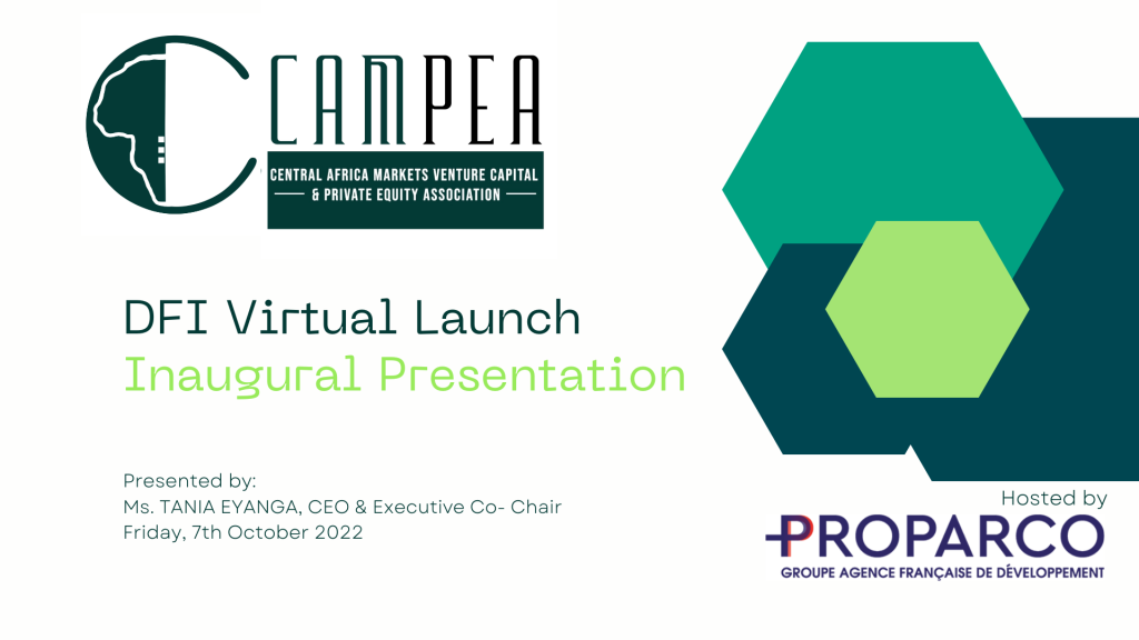London, 7 October 2022- The Central Africa Markets Private Equity & Venture Capital Association (CAMPEA) officially marked its Virtual Soft Launch, co-hosted by Proparco, with the participation of leading African Development Finance Institutions (DFIs). Amongst delegate attendees. were represented consortium members of the ARIA African Resilience Investment Accelerator consortium facility, including KFW DEG,  Crossboundary, FMO and Swedfund. Additional participating DFIs included the Africa Finance Corporation (AFC), International Finance Corporation (IFC), British International Investment (BII), Norfund, FMO (Netherlands Development Bank), Proparco, and DEG – German Investment Corporation.